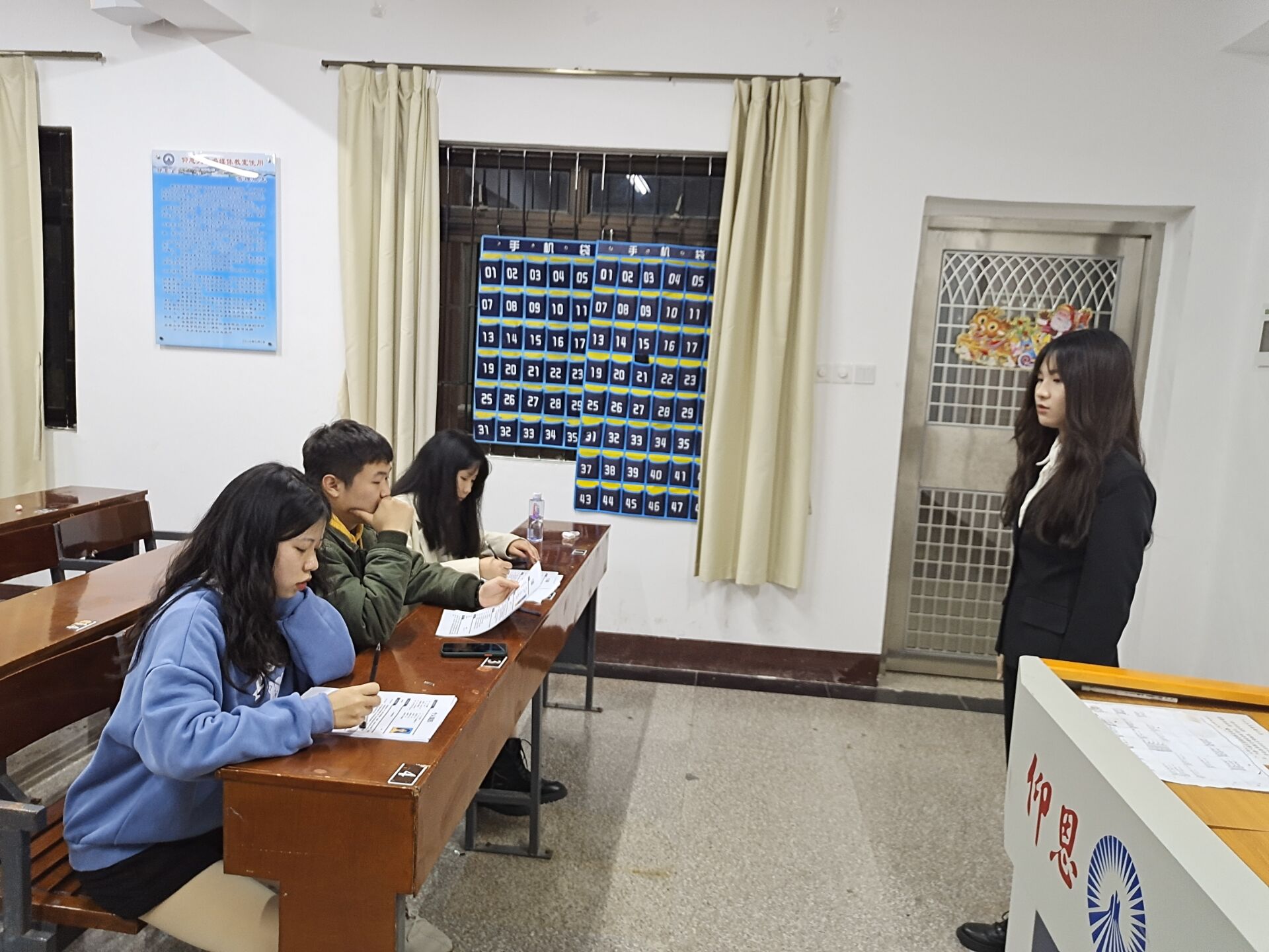 本次换届竞选采用结构化面试,竞选者通过抽签决定面试顺序。面试一共分为自我介绍与问答环节两部分。在自我介绍过程中,竞选者回顾自己在团委里的工作经历,陈述自己的竞选优势,并且表明想要为部门建设出一份力的决心。而后,在问答环节中,评委团结合候选人的自我介绍及其日常表现,对竞选者提出具有针对性的问题借此考验他们对各自竞选部门工作的熟悉程度和对工作出现突发情况时的应变能力。最后,评委团对竞选者的工作表现和面试情况进行综合评定得出最终结果。