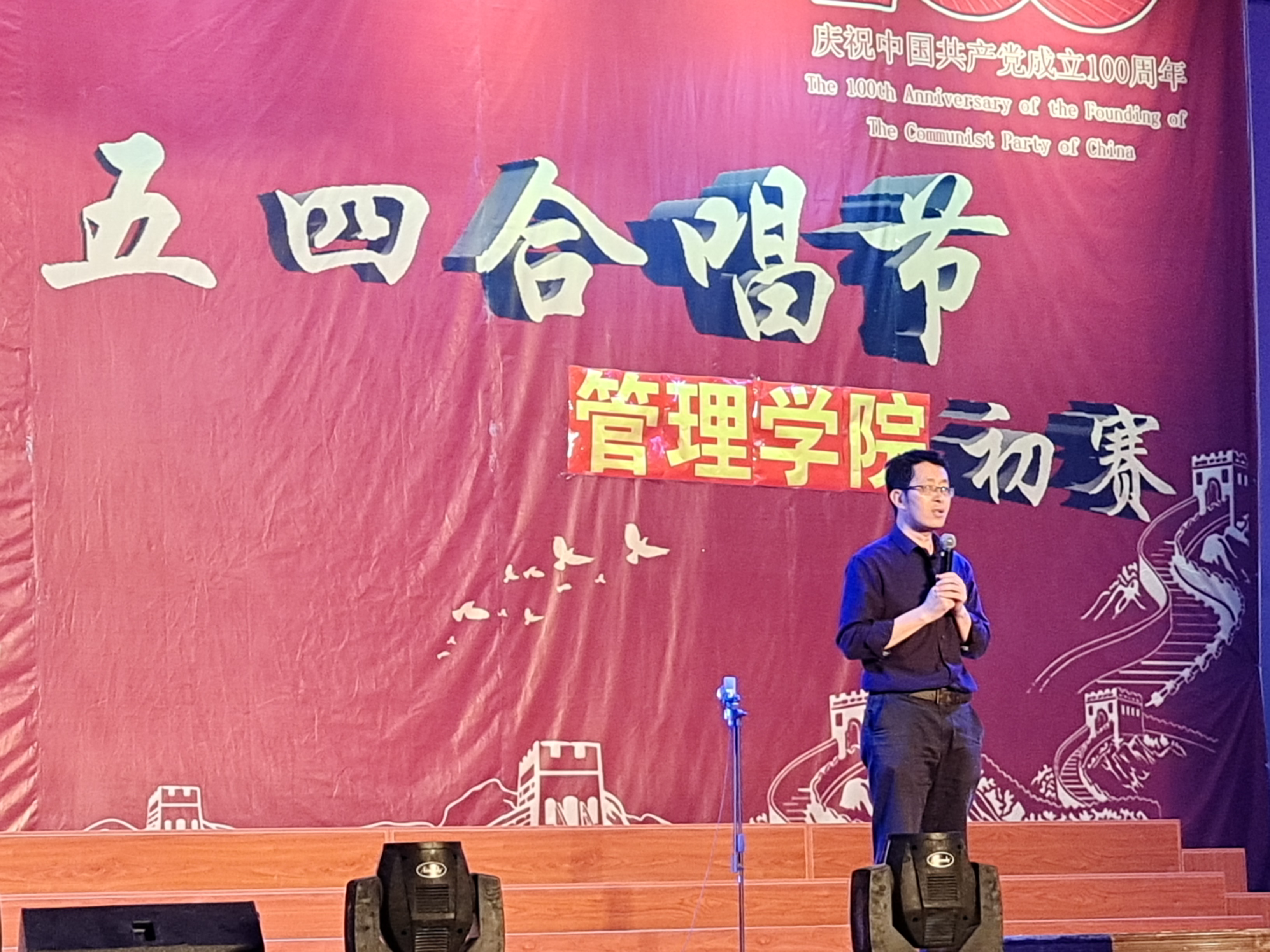 党支书记兼常务副院长许惠铭开场致辞 晚会开始,主持人激情澎湃的开场白让晚会迅速升温。接下来由学院党支书记兼常务副院长许惠铭为管院五四合唱节开场发言致辞。致辞结束,由学院二十五支队伍轮流上场表演,参赛队伍们嘹亮的歌喉唱响了慷慨激昂的“五四精神”。“学会做人,守信笃行。学会做事,创业有成 ”的校训在参赛选手的口中歌唱出来,时刻将仰恩精神铭记于心。同时在校歌演唱的过程中,饱含他们对母校的热爱与感激之情。《走进新时代》、《没有共产党就没有新中国》、《强军战歌》等一首首经典红色曲目,点燃了我们的爱国情怀,突出我校对弘扬爱国主义精神与五四精神教育的重视。同学们衣着华丽、着装统一,与合唱曲目交相辉映。他们的精彩演唱赢得了现场观众与评委老师们的热烈掌声。