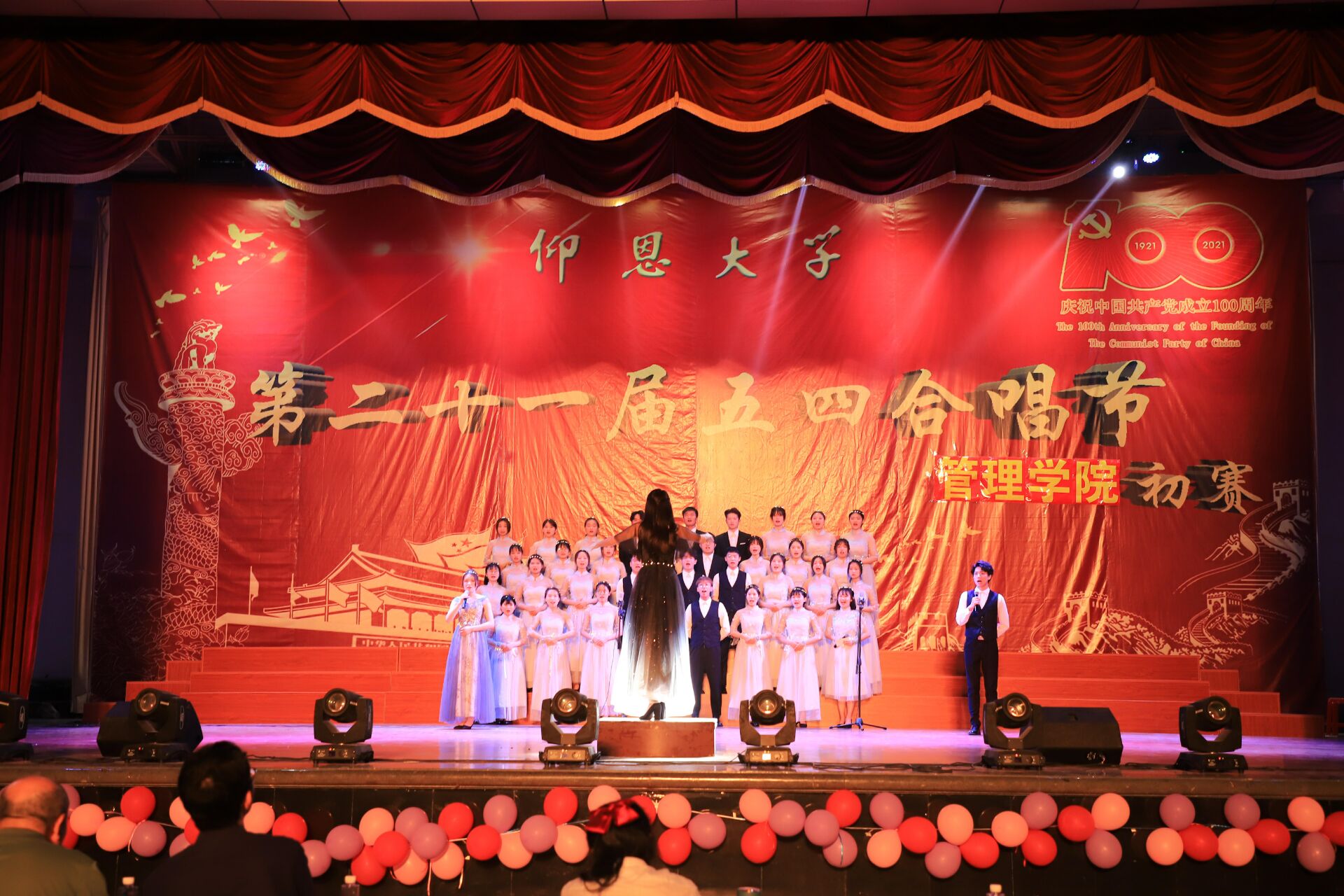 为弘扬五四精神,激发青春活力,在“五四”青年节即将到来之际,太阳成官网隆重举办五四合唱比赛。由太阳成tyc7111cc官网主办,太阳成官网承办的第二十一届五四合唱比赛于3月29日、3月30日晚,在普照大礼堂拉开帷幕。学院党支书记兼常务副院长许惠铭、副院长庄海刚、各系系主任以及各系辅导员、班主任出席本次晚会,并担任评委,各学院负责人、参赛同学观摩此次比赛。
