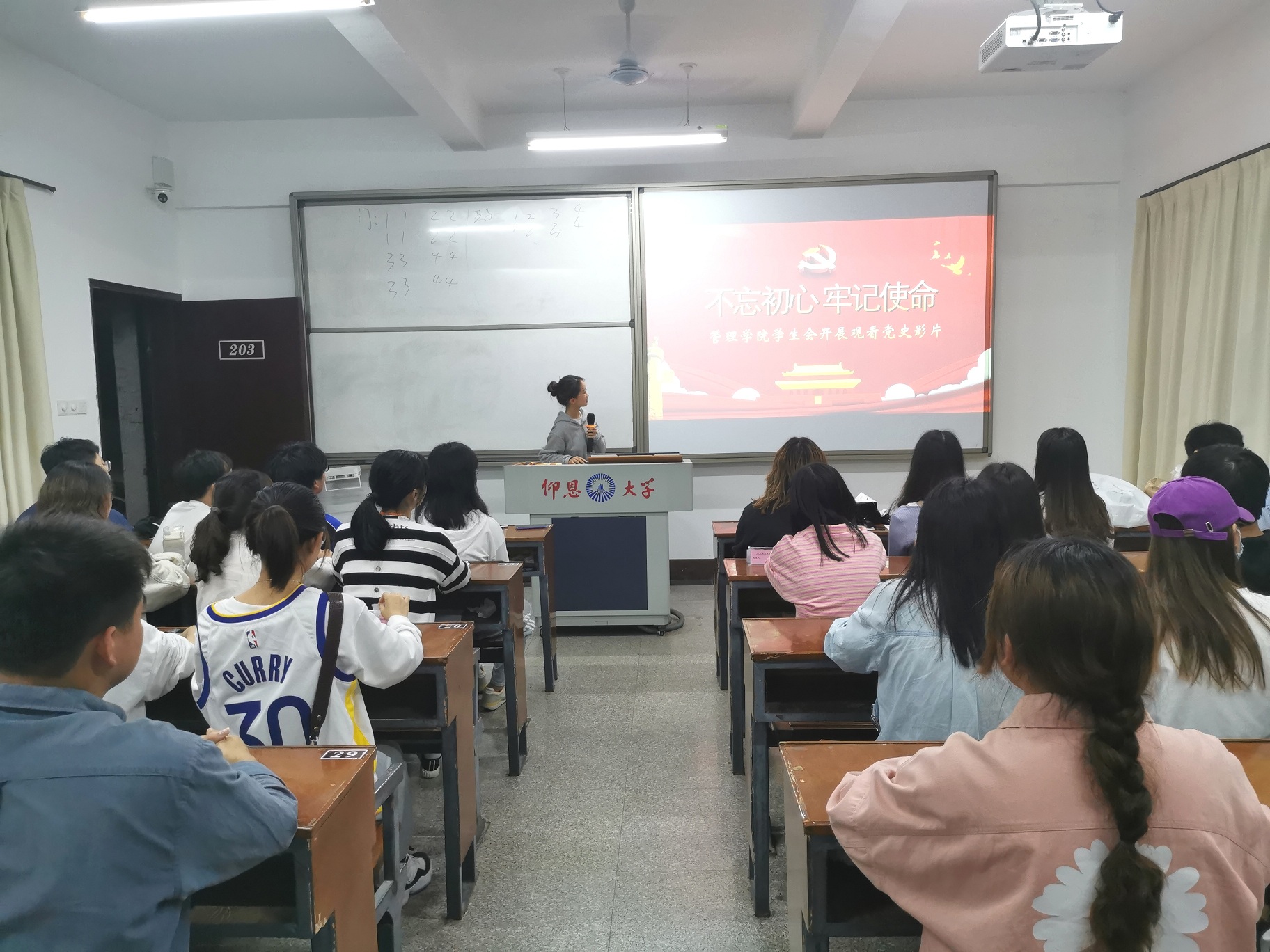 放映结束,学生会主席团成员以及各部门干部就电影中的情节发表自己的观影感言,明白了要牢记历史、唤醒记忆,要时刻铭记现在的幸福安康生活来之不易,要把对党、对国家、对人民的无限忠诚融入血脉并落实到日常生活中。(文/黄馨 图/洪玉珊 审核:连景霞)