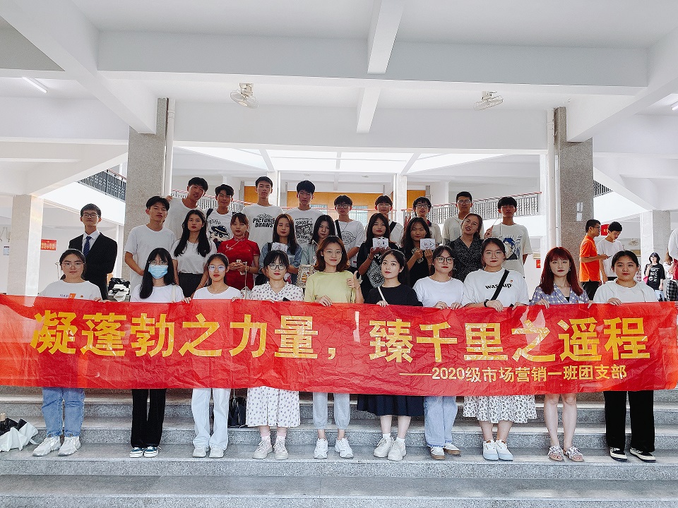 班级合照 在此次活动中,20级市场营销系(1)班的同学们相互配合,团结合作。比赛过程中,通过制作立体书、折扇、灯笼等形式,营造了互帮互助,积极向上的班级氛围。在全班同学的共同努力之下,凭借着团结进取、积极乐观的精神,20级市场营销系(1)班取得本次团立项比赛的一等奖。