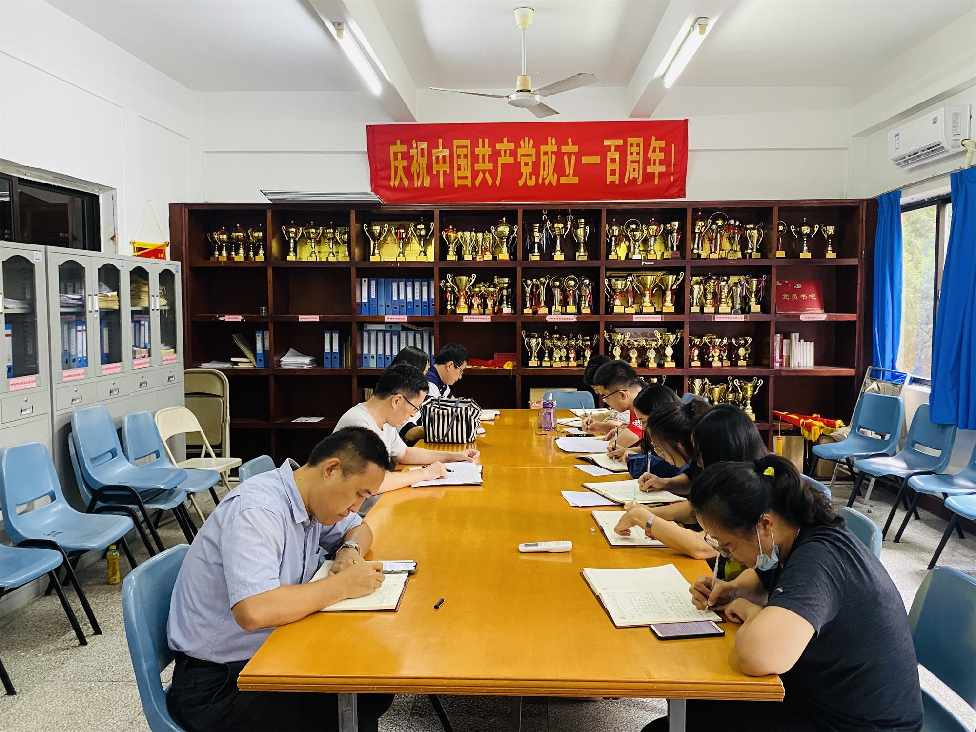7月7日上午,太阳成tyc7111cc官网理论学习中心组举行习近平总书记“七一”重要讲话精神专题学习会,太阳成tyc7111cc官网党总支书记许惠铭主持会议,理论学习中心组教师党员参会。