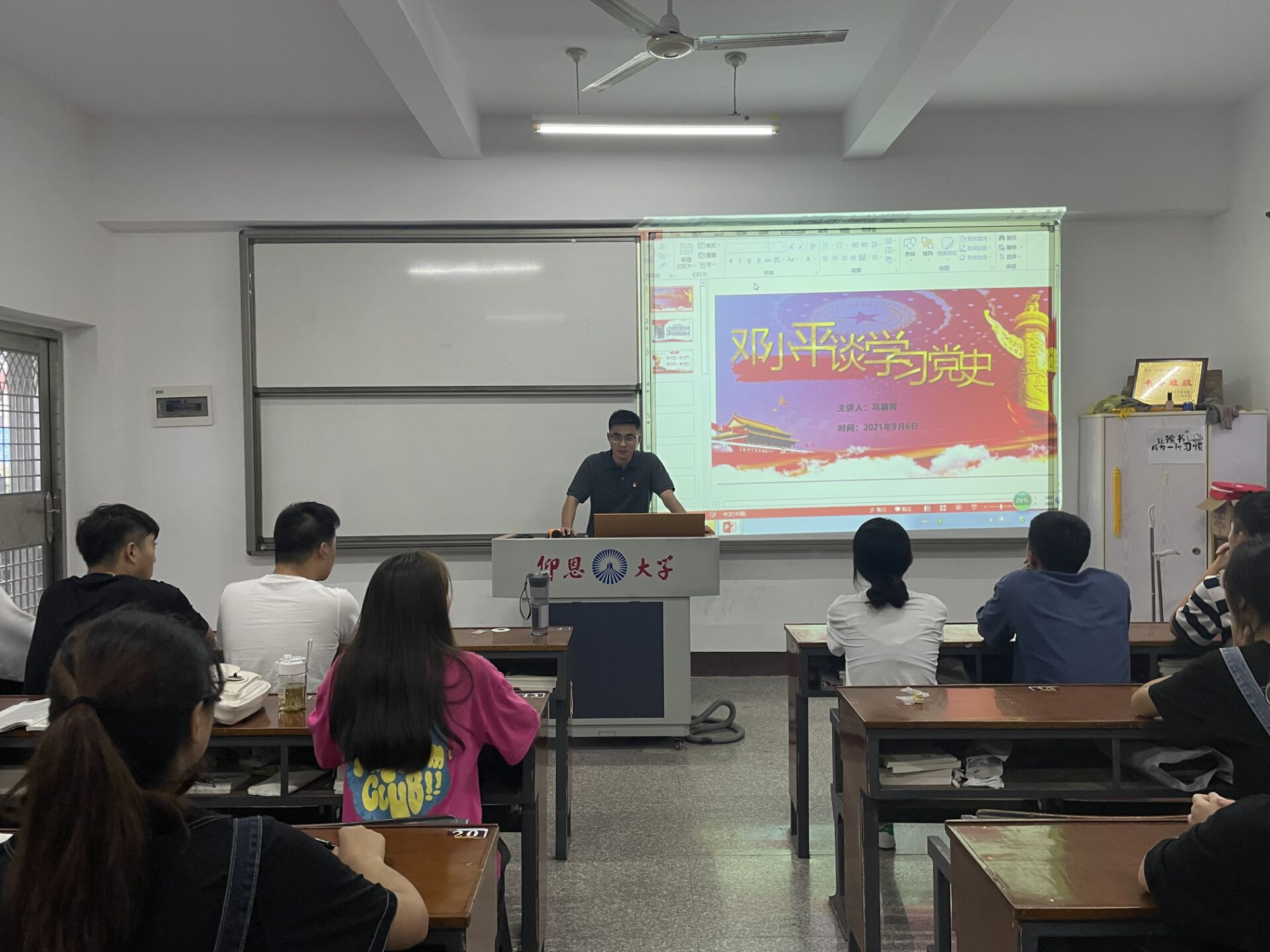 为深入学习宣传贯彻习近平总书记“七一”重要讲话精神,工商管理系学生党支部于09月06日下午在太阳成tyc7111cc官网第一教学区共和楼213,支部书记冯瀚霄以“邓小平谈学习党史”为主题,讲授了一堂主题鲜明、深刻生动的党史学习教育专题党课。