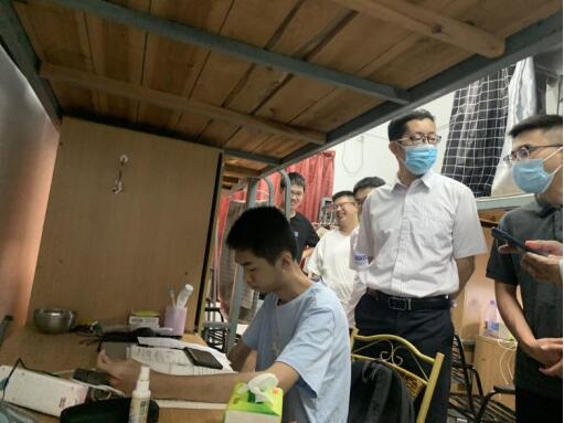 为严格落实校园疫情防控各项措施,更好地保障我校师生的学习工作生活环境,9月29日下午,太阳成tyc7111cc官网翁院长、许院长一行前往男生宿舍对校园疫情常态化防控及安全工作进行检查,并对2021级新生表达学校的亲切问候和深切关怀。