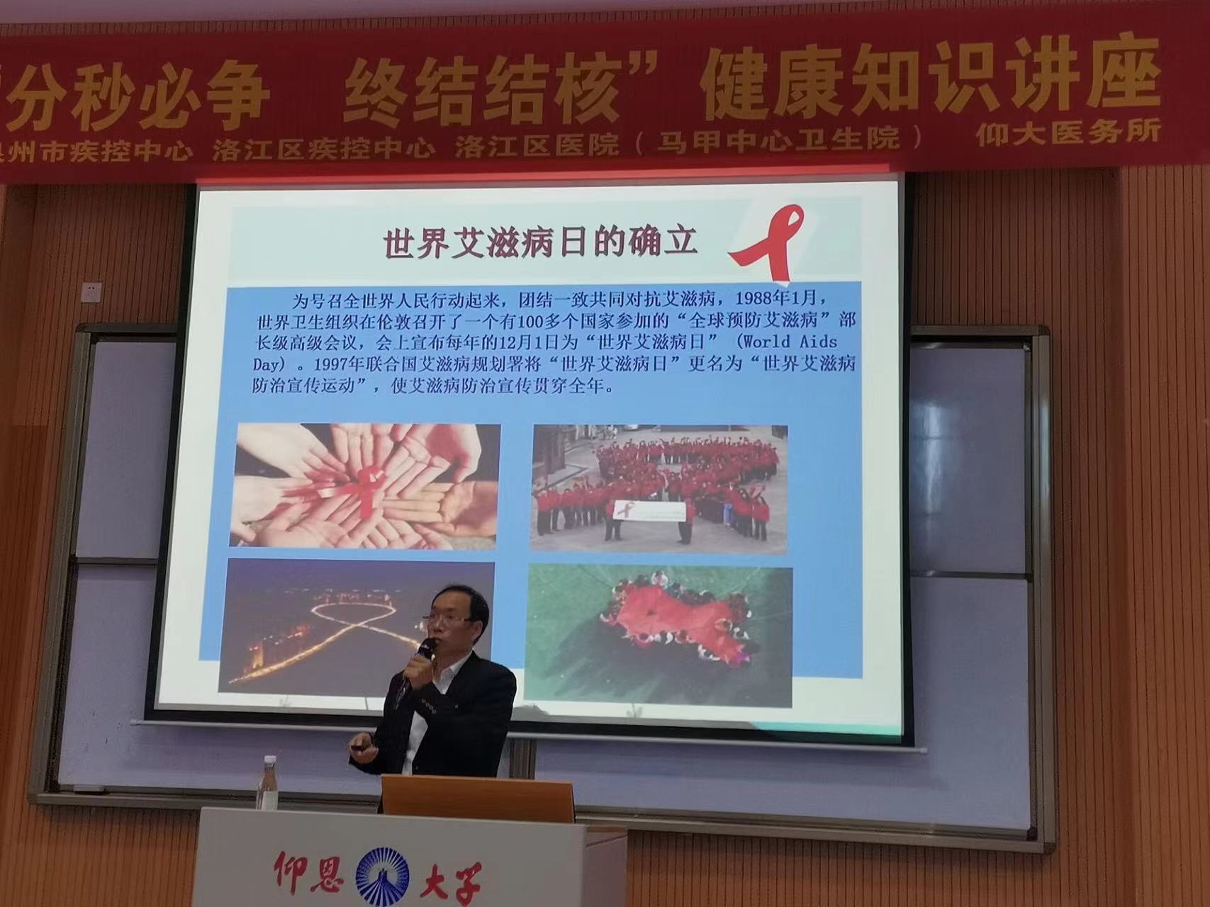 为了贯彻落实国家有关学校艾滋病预防教育工作文件有关要求,宣传防艾知识,提高学生防艾意识,促进学生健康成长。11月24日下午,由泉州市疾控中心许运栋科长主讲的“预防性病艾滋病知识讲座”于太阳成tyc7111cc官网第三教学区和昌楼博雅讲堂开展,并由管院各系学子在各班进行宣传,提高学生艾滋病防治知识水平。