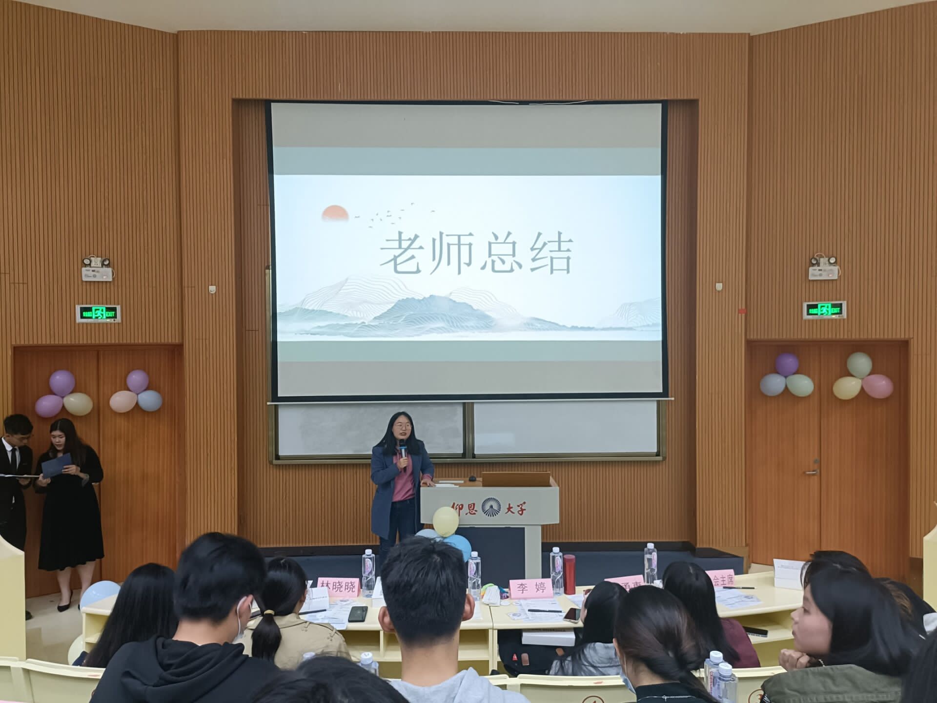比赛接近尾声之时,张迎华老师上台总结,她充分肯定了此次比赛同学们的用心和刻苦,并继以指出此次各参赛班级的不足之处。希望今后管院学子能够继续发扬管院班集体的强大凝聚力和良好学风,书写更加辉煌的故事。