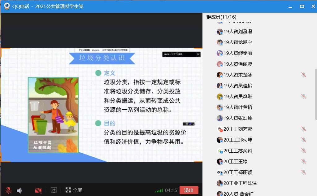 许雯静同志分享垃圾分类的好处 本次活动由许雯静同志进行分享。活动过程中,她先介绍有关垃圾分类的含义以及垃圾分类的好处,令支部成员对于垃圾分类有了更深的了解,也明白了垃圾分类的重要性。活动最后,许雯静同志还向现场的支部成员提出了几个问题,支部成员积极参与,整个活动现场氛围浓厚。