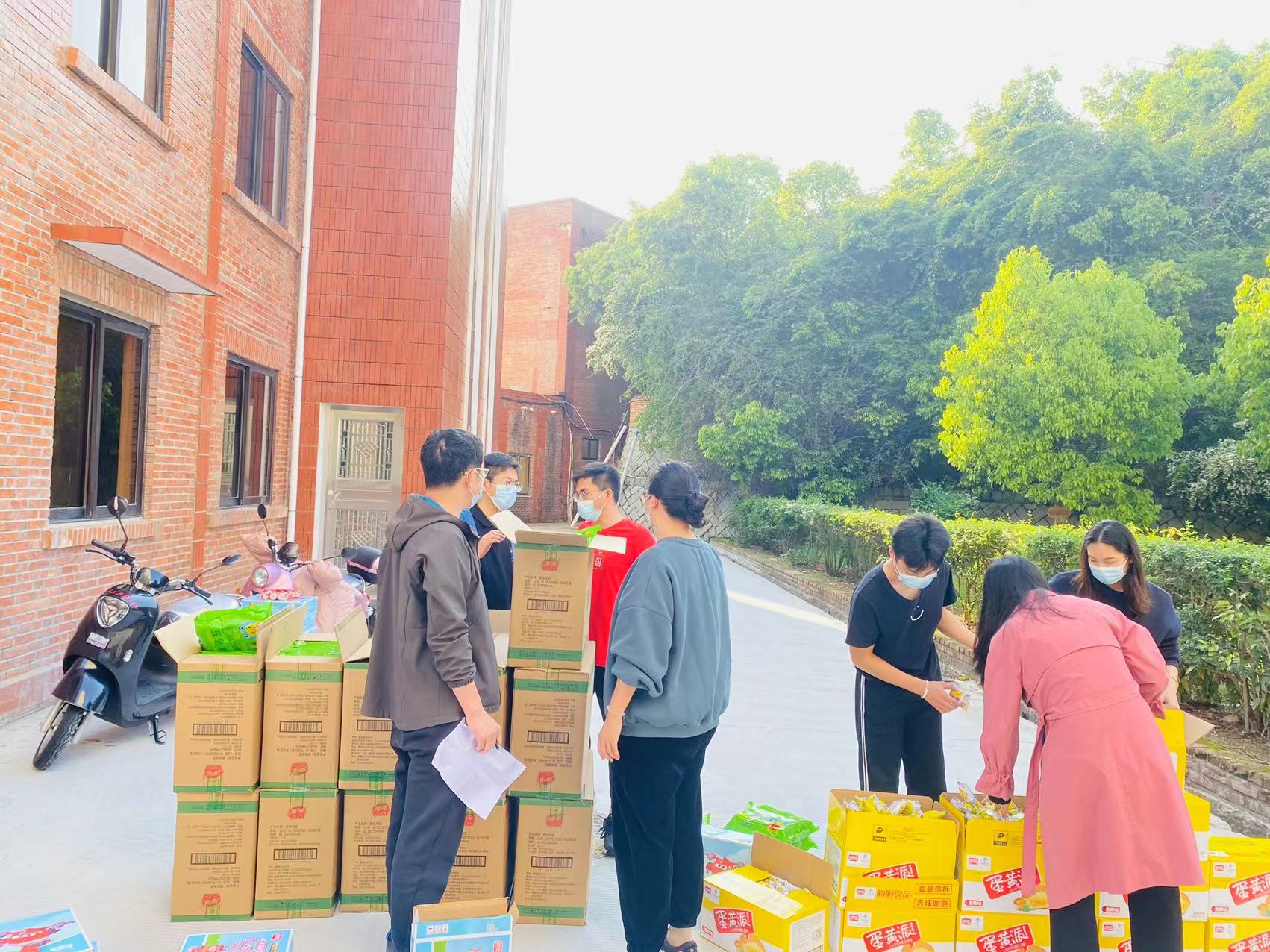 许惠铭书记与各系辅导员整理物资 随着全校人员信息摸排、体温监测、全员核酸等各项工作的深入推进,防疫志愿队伍愈发壮大,各社会组织、爱心企业纷纷加入,为疫情防控献出自己的一份力。爱心企业以捐赠物资的实际行动,助力疫情防控工作,诠释企业的社会责任与担当。党总支书记许惠铭老师表示:“滴水相辅,汇而成川。企业的爱心善举,让我们看到了战胜疫情的强大社会力量。校企联动,齐心抗疫,我们必将打赢这场疫情防控阻击战。”