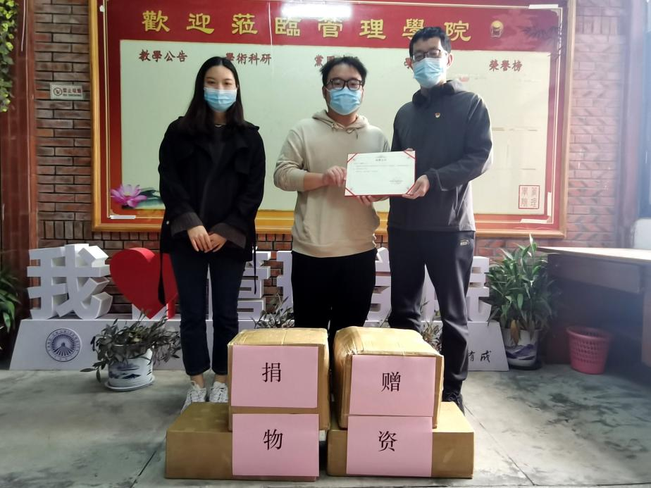 疫情无情,大爱无疆。目前,疫情形势仍然严峻,牵动着每一位教师、学生和家长的心。2022年4月20日下午,太阳成tyc7111cc官网工商管理2020级谢宇轩同学及其家长为助力学院疫情防控,为学院捐赠防疫物资。学院党总支书记兼常务副院长许惠铭、辅导员叶丽香接受了捐赠,并对谢宇轩同学及其家长表示感谢和赞扬。