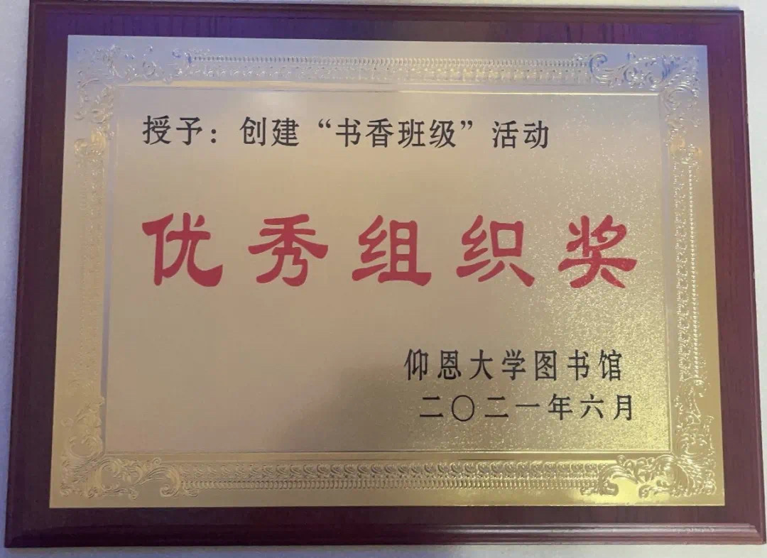 太阳成tyc7111cc官网荣获2020-2021学年“书香班级”活动优秀组织奖
