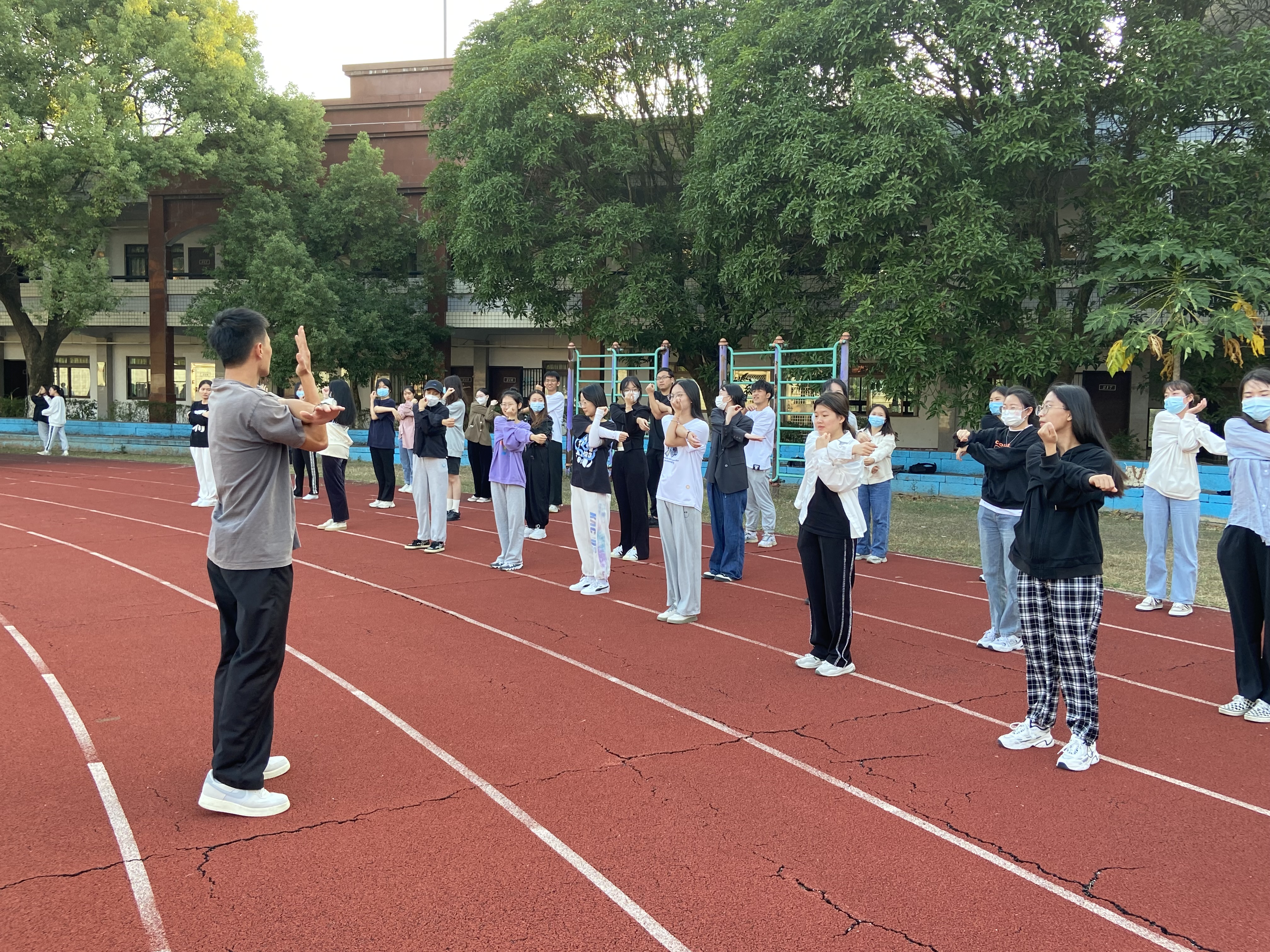 党支部成员热身练习 活动的开始,魏炳南同志带大家做了热身活动,接着将大家分成三组,各组党员同志们对于22级同学的薄弱项目进行了加强训练,针对同学们不规范的动作进行了指导纠正以及示范了正确的动作来帮助同学们提高成绩。党员同志们用心施教、耐心指导,小组长辅助教学、实践操作下,同学们认真完成跳远、起跑加速、引体向上等相关训练。与自行练习相比,这种训练方式提高了训练效率,在更短的时间内有效帮助同学们掌握了正确的运动技巧,提高了同学们的体育运动意识,为同学们体测提升打下坚实基础。