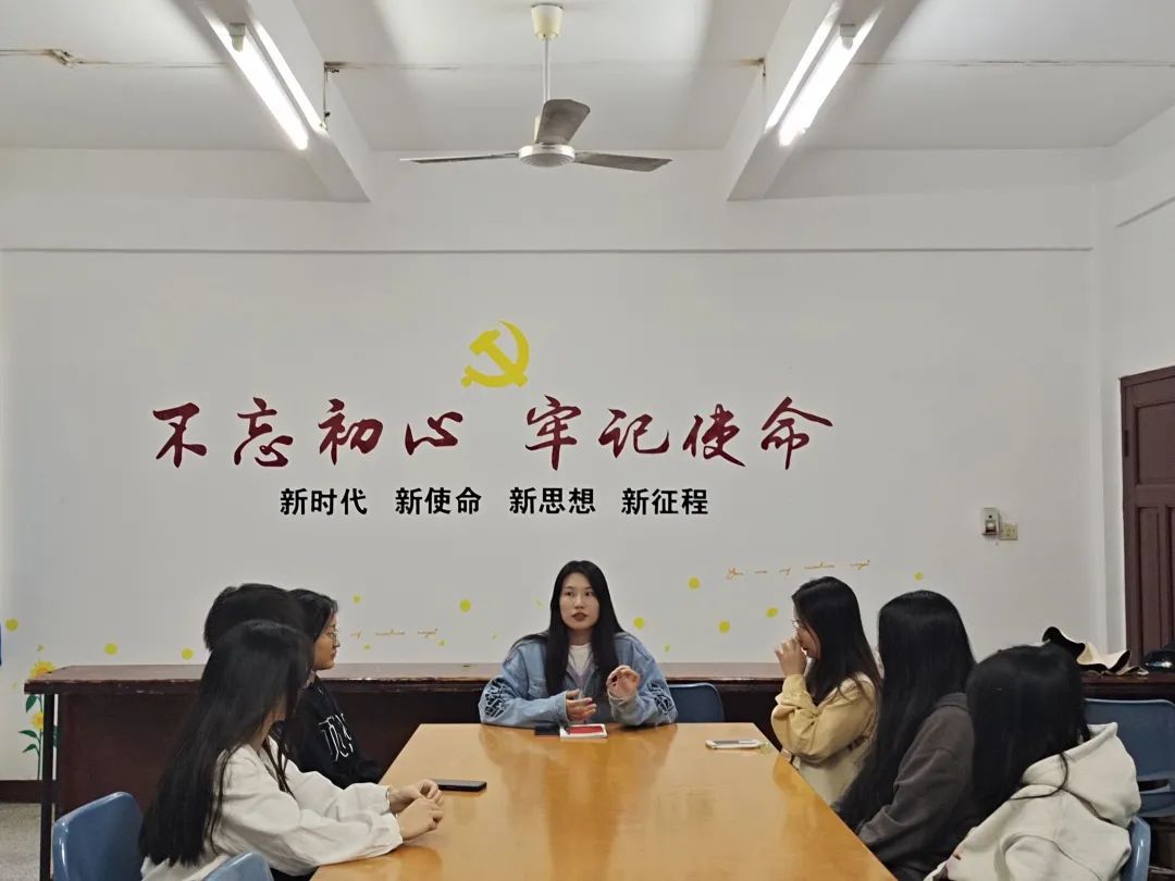 物流管理系学生党支部书记蔡婷婷主持会议现场