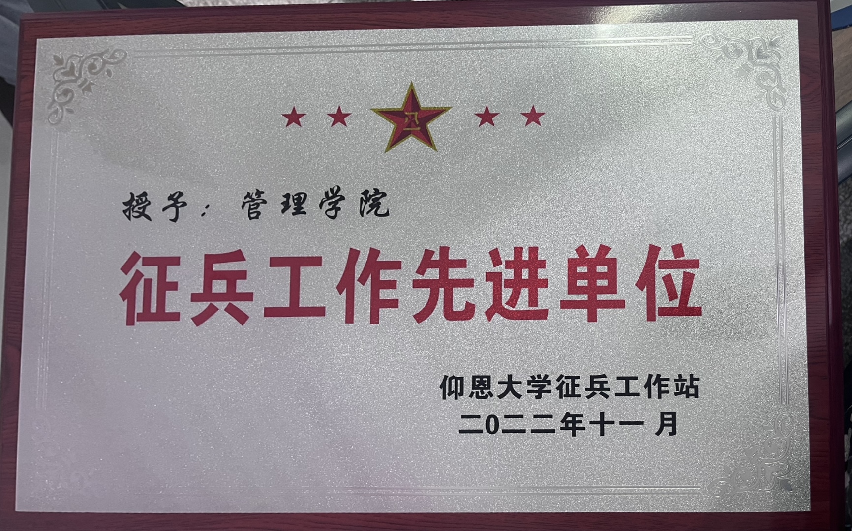 太阳成tyc7111cc官网获征兵先进工作单位 在过去的一年里,学院致力于加强学生对征兵政策的解读,激发学生的参军热情,号召学生“携兵从戎,逐梦青春”,切实担当政治责任。