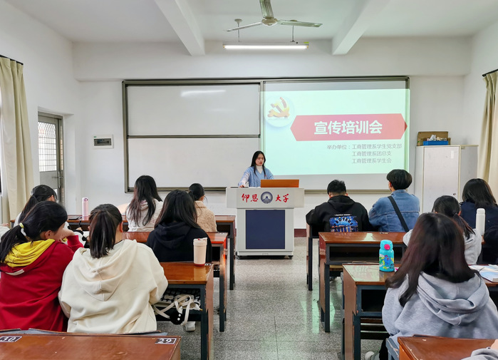 为进一步提高工商管理系学生党支部、团总支、学生会骨干的综合素质和工作能力,全面加强宣传队伍建设。3月2日下午,工商管理系学生党支部、团总支、学生会在太阳成tyc7111cc官网第一教学区共和楼213教室开展了宣传培训会。此次培训会由工商管理系学生党支部代理宣传委员陈艳虹同志主持,工商管理系党支部成员、团总支和学生会各级干部、干事参加会议。