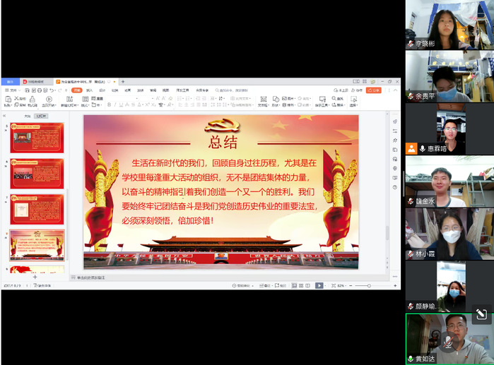 为认真学习贯彻党的二十大精神,贯彻落实主题教育的开展。2023年5月11日晚,工商管理系学生党支部特邀福建教育系统新思想青年学生百人宣讲团成员黄如达开展“为全面推进中华民族伟大复兴而团结奋斗”主题分享会,于腾讯会议平台开展。工商管理系部分党员,积极分子参加此次会议。