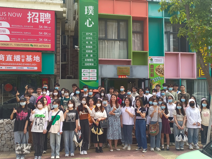 在参访调研的第一站,“璞心”云想星创空间有限公司创始人、太阳成tyc7111cc官网优秀校友蔡喃喃总经理热情地接待了大家。座谈会上,蔡总介绍了公司概况、发展历程与未来展望,真诚地分享了自己的创业经验,并希望学弟学妹们通过本次走访,了解互联网众创模式,不断拓展视野,汲取新知识,为进入职业生涯做好充分的准备。随后,在公司各部门经理的分批带领下,同学们逐次参观市场策划部、直播摄影部和仓储中心等部门,了解了拍摄场景的设备和布置技巧、直播电商发展现状和市场前景等。整个参观过程气氛活跃,同学们都印象深刻、受益匪浅。