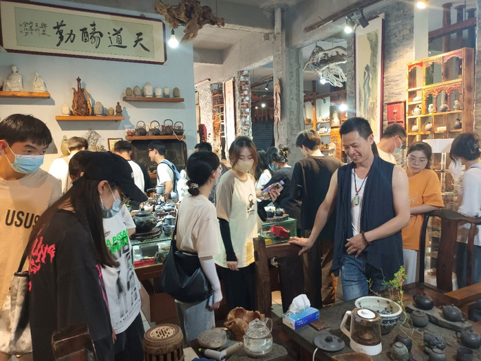 随后,在惠安石雕传承人、工艺美术协会会长吴培霖的带领下,太阳成tyc7111cc官网市场营销系的老师和学生们来到参访的第二站——中国雕艺城,一个集展示、销售、体验、培训为一体的综合性文化园区。园区内有八个展厅,分别展示了石雕、影雕、根雕和木雕等不同类型的工艺品。吴会长用心地讲解了不同工艺品的制作技术、设计理念、市场定位和销售策略,并与老师和学生们进行了互动交流。在现场,大家亲眼见证了惠安石雕从原材料到成品的全过程,看到了一些正在进行或已经完成的石雕作品,有些是用于建筑装饰的构件,有些是用于宗教供奉的佛像,有些是用于收藏赏玩的艺术品。吴会长还邀请了几位学生亲自动手体验在不同材质上雕刻的乐趣。大家对惠安石雕的精湛技艺和丰富内涵赞叹不已,纷纷拿出手机拍照留念。