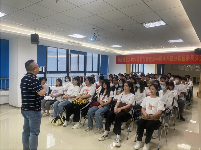 活动伊始,企业负责人苏佳丽围绕顺丰的发展历程、“天网+地网+信息网”及多元业务领域为在场师生作了详尽的介绍,深入了解顺丰是如何利用科技赋能产品创新,为客户提供涵盖多行业、多场景、智能化、一体化的智慧供应链解决方案,让22级学生看到物流行业的广阔天地,增加对于专业的认同感。随后,在中转场负责人带领下,师生深入中转场现场参观学习,进一步了解中转场的工艺布局、自动化设备等,直观感受科技对物流带来的改变。