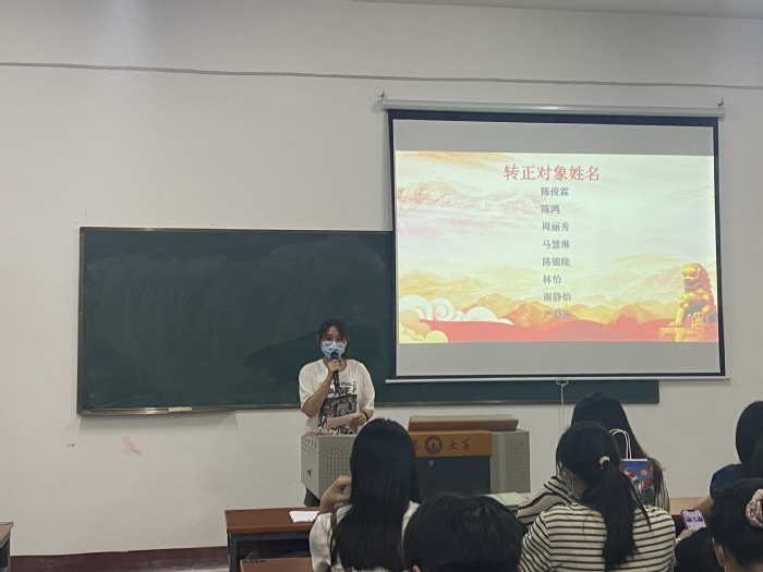 此次申请转正的8位预备党员是陈俊霖、陈鸿、周丽秀、陈锦隆、马慧林、林怡、谢婧怡、严晓萍。首先,由这8位同志宣读自己的转正申请,从思想、学习、工作和生活等方面,详细汇报自己在预备期间的表现,总结自身还存在的不足与缺点,表明修正自己的信心和入党的决心。接着,支部全体正式党员进行无记名投票表决,一致通过这8位同志如期转为正式党员。工商管理系学生党支部书记李超楠同志带领支部全体成员进行入党宣誓,通过宣读入党誓词,支部全体成员的理想更加坚定,同时也推进了大家在学史明理中坚守初心,牢记党员的使命。