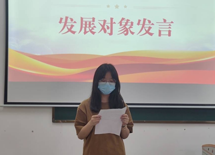 本次会议严格按照党组织接收预备党员各项程序进行。会议伊始,在清点完到会人数之后,进入第一项议程,吴燕、孙淑华等5位发展对象逐一向大会说明自身对党的认识、入党动机以及在大学期间的表现,表明自己已经做好接受党组织考验的准备。第二项议程,由支部正式党员从思想觉悟、学习成绩、日常表现等方面对发展对象在入党积极分子考察期的情况进行介绍评价,并对其能否加入党组织表明态度。第三项议程,全体正式党员关于是否同意该同志加入党组织是否符合党员条件发表意见进行充分讨论,随后进行了无记名投票。经监票人和计票人统计,大会同意接收同意接收吴燕等5名同志为中共预备党员。第四项议程,全体党员进行入党宣誓,整个宣誓过程庄严而凝重。