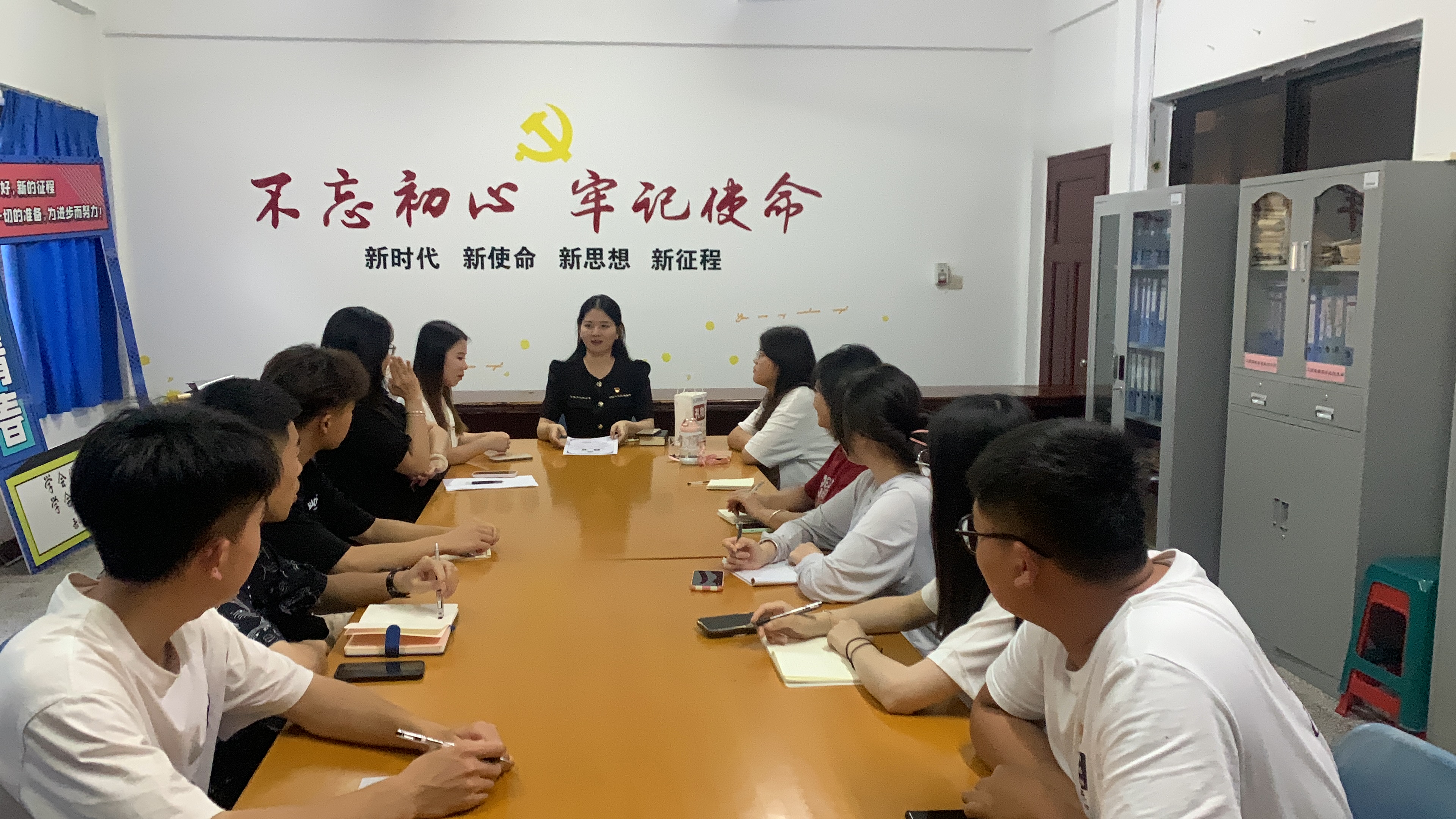 首先,本次会议为认真工作的2020级辅导员助理游林耿同学颁发了聘书,对此同学的工作效率和态度给予认可。其次,22级优秀班导董瀚霆与黄于诚同学为23级新生班导做经验分享,通过在开学前、开学后第一学期、后期三个阶段强调不仅在开学时要注意新生的需求和情况,在暑期的班群建设上也要下功夫,解决新生的问题。然后,2019级辅导员助理兰燕菲与2020级辅导员助理游林耿同学说明辅导员助理、班导要明确自己的工作内容,保证信息准确再进行回复,做好作风建设,约束自己,更好地为新生服务。会议最后,辅导员连景霞老师希望新一届的班导们能够用心、自信地管理班级,做到互相帮助,在行动中带领新生再续市场营销系辉煌。