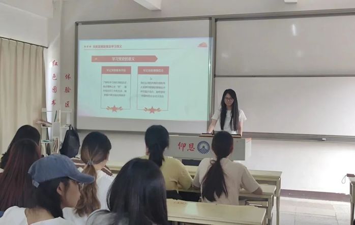 活动伊始,张梦淇同志通过PPT进行讲演,从大革命时期、土地革命战争、抗日战争、解放战争四个历史时期,讲述了中国人民在中国共产党的领导下进行的英勇顽强斗争,创造出的不朽革命业绩。通过一个个感人的历史故事,勉励同志要学习革命先辈身上所折射出的“下定决心,不怕牺牲,排除万难,去争取胜利”的伟大精神,努力学习,全面提高综合素质,勇敢肩负起时代赋予的重任。
