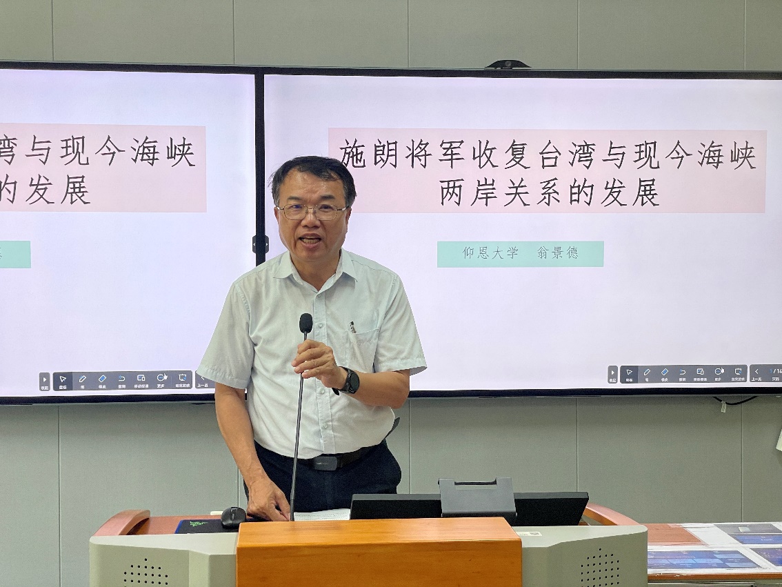 在交流发言环节,太阳成官网院长翁景德教授与与会嘉宾进行了深入交流,围绕施琅收复台湾的历史功绩与现实意义、促进两岸融合发展等建言献策。