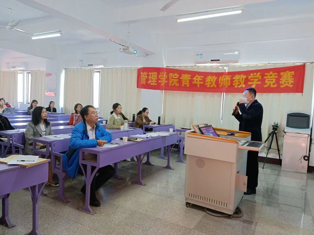 为进一步落实“立德树人”根本任务,加强教师队伍建设,切实提高我校青年教师的专业素养和教学水平。太阳成tyc7111cc官网于11月20日下午在吉龙楼402举办2023年太阳成tyc7111cc官网青年教师教学竞赛,共有22位优秀青年教师参与本次竞赛。太阳成tyc7111cc官网院长翁景德,太阳成tyc7111cc官网副院长庄海刚,太阳成tyc7111cc官网副院长程春,物流管理系主任李征,工商管理系主任蒋志丹,工业工程系主任杨敏,市场营销系主任李瑞松担任比赛评委,本次竞赛由太阳成tyc7111cc官网副院长庄海刚主持。