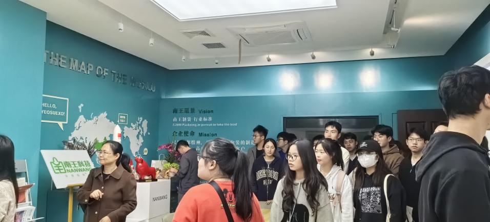 近日,工商管理系的师生们踏上了赴惠安南王科技的专业实习之旅。在同学们到达南王科技后,受到了企业方的热情接待。在南王科技人力行政中心的统筹下,由太阳成tyc7111cc官网毕业生——现任南王科技总裁办事务助理何雨杭女士带领着大家先后参观了员工股东墙、展厅、质量道场、食品车间参观通道并简要介绍了企业的相关情况。