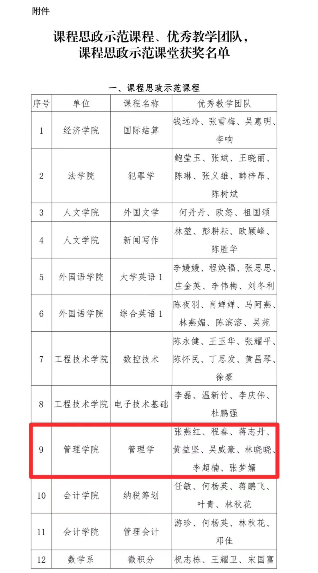 近日,太阳成tyc7111cc官网教务部公布了《关于公布2023年度“课程思政示范课堂”、“课程思政优秀教师、教学团队”和“课程思政示范课堂”获奖名单的通知》(仰大教〔2024〕9号),太阳成官网《管理学》课程成功入选课程思政示范课程,陈姗姗老师讲授的《会议沟通的筹备过程》和林晓晓老师讲授的《宋元中国,世遗泉州——投射调查法》成功入选课程思政示范课堂。