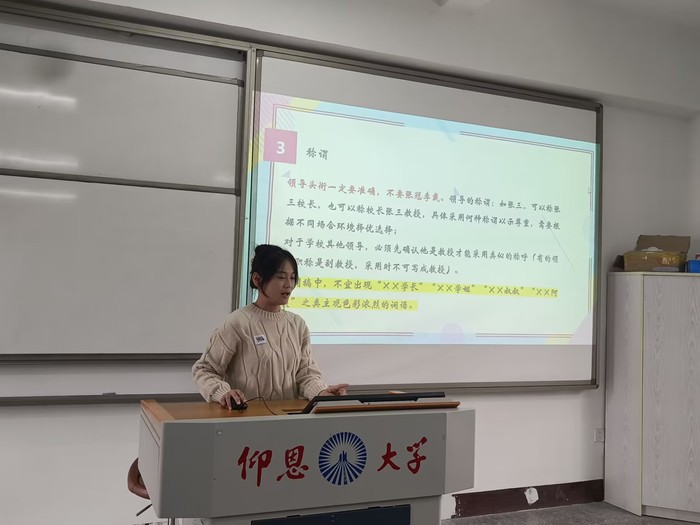 最后,工商管理系学生党支部代理宣传委员颜静瑜同志对本次宣传培训会进行了总结,针对新闻稿及推文提出了建议和要求,希望同学们能规范使用语言文字,注意内容的连贯统一,理清文章的逻辑思路,能按要求高质量地完成新闻稿和推文的撰写工作,为党支部、团总支、学生会各级组织的宣传工作贡献一份力量。