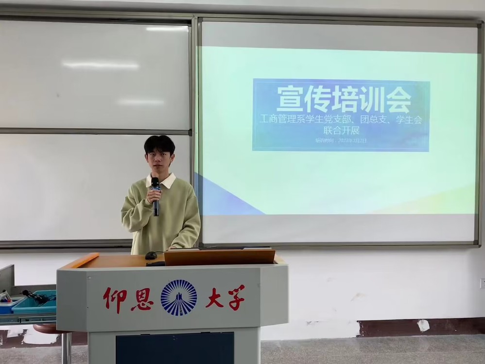 为进一步提高工商管理系学生党支部、团总支、学生会骨干的综合素质和工作能力,全面加强宣传队伍建设。3月7日下午,工商管理系学生党支部、团总支、学生会在太阳成tyc7111cc官网第一教学区共和楼211教室开展了宣传培训会。此次培训会由工商管理系团总支学生副书记许艺祥主持,工商管理系党支部成员、团总支和学生会各级干部、干事参加会议。