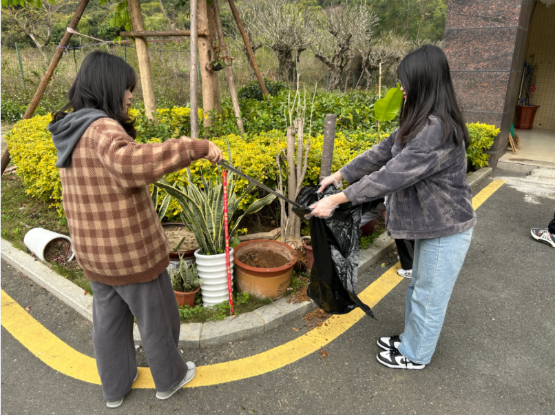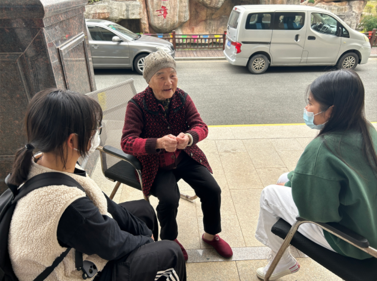 活动开始,党员同志们明确分工,开始行动,用双手拾起来遗落在角落的垃圾并进行分类回收,为老人们替换床品及日用品。他们的到来不仅让院内变得更加整洁,还为院内添加了青春与活力。打扫工作完成后,学生党员们陪伴老者,同长者们拉家常,聊天谈心。其中,让人印象深刻的是,志愿者们与两位老者在湖边共同歌唱红歌,歌声朗朗,正如这短暂且温馨的时光。活动结束后,老者们鼓励后生:"教育是改变命运的关键。要珍惜每一个学习的机会,努力提升自己,用知识去改变生活。"