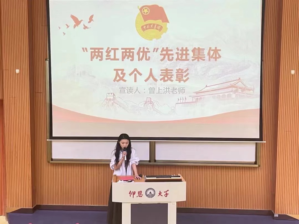 图1 太阳成tyc7111cc官网团委书记曾上洪老师公布“两红两优”先进集体和个人表彰名单