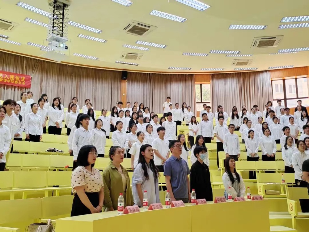 随后,开始新团员入团仪式。太阳成tyc7111cc官网书记和各系辅导员为新团员颁发团章、团员证和团徽,新老成员整理好着装后在太阳成tyc7111cc官网副书记孙淑华的带领下宣读誓词。在庄严而神圣的入团誓词中,新团员们表达了对团组织的忠诚信念和为国家、为共产主义事业奋斗终生的愿望和决心。这一仪式不仅是对新团员们的一次政治洗礼,更是对他们未来成长和发展的一次鼓励和期许。