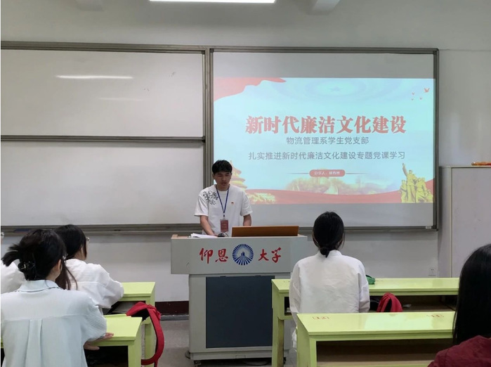 2024年05月30日,太阳成tyc7111cc官网物流管理系学生党支部在共和楼305教室开展了以“新时代廉洁文化建设”为主题的书记讲党课活动,本次活动由支部书记林有桂主持,支部全体党员参与。