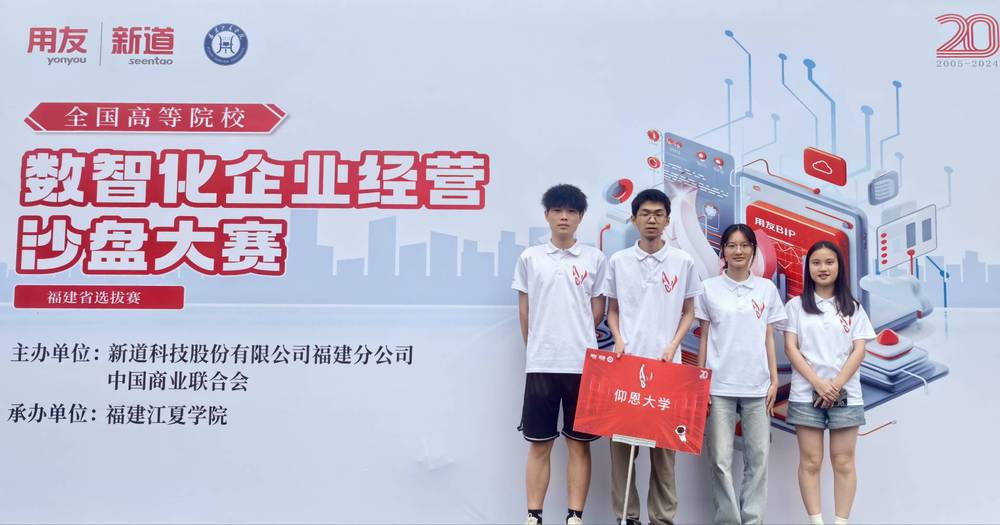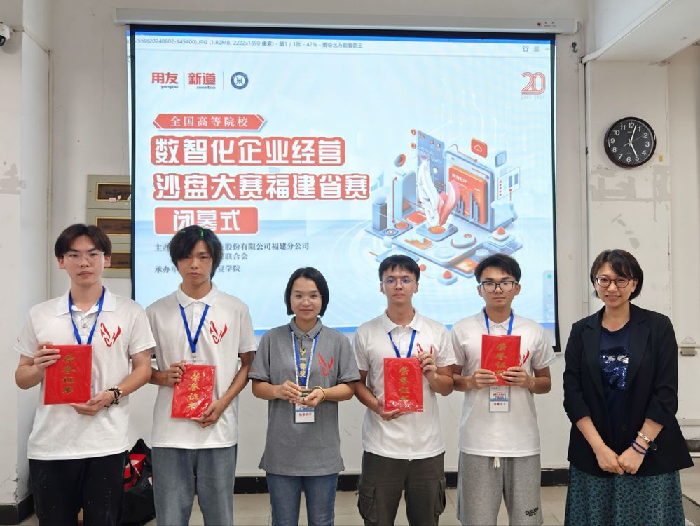 2024年6月2日,由中国商业联合会携手新道科技股份有限公司福建分公司主办的全国高等院校数智化企业经营沙盘大赛福建省选拔赛在福建江夏学院圆满落幕。由工商管理系学生组成的两支精英队伍分别在选拔赛中斩获一等奖和三等奖。