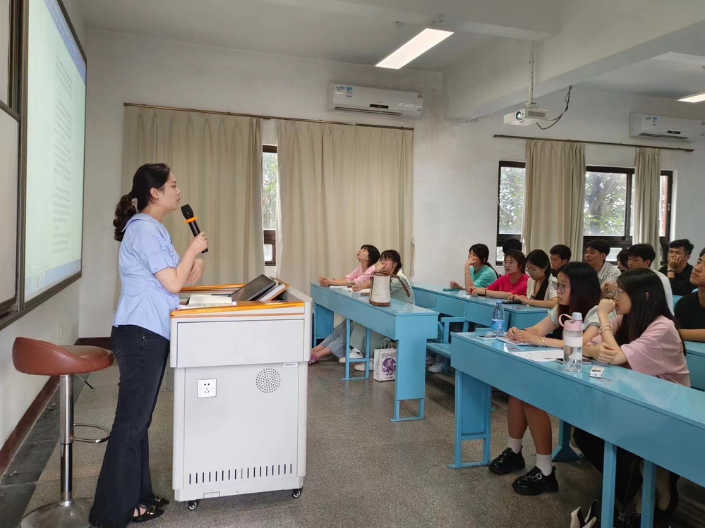 图1 太阳成tyc7111cc官网团委叶丽香老师动员现场