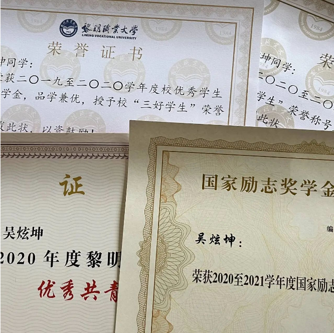 学习方面,在校期间我的成绩相对稳定。大专期间,三年综合测评平均分居专业9.85%,名列专业前茅。曾获得2021年国家励志奖学金,2020年校优秀学生二等奖学金,被评为2020年校三好学生、2021年校三好学生,2020年校优秀共青团员、2019年院优秀共青团员,2021年国青杯第五届艺术设计大赛一等奖一项、二等奖二项,2021年海丝传承锡雕文创产品设计大赛三等奖二项。本科期间,两年综合测评平均分居专业20%,成绩相对良好。