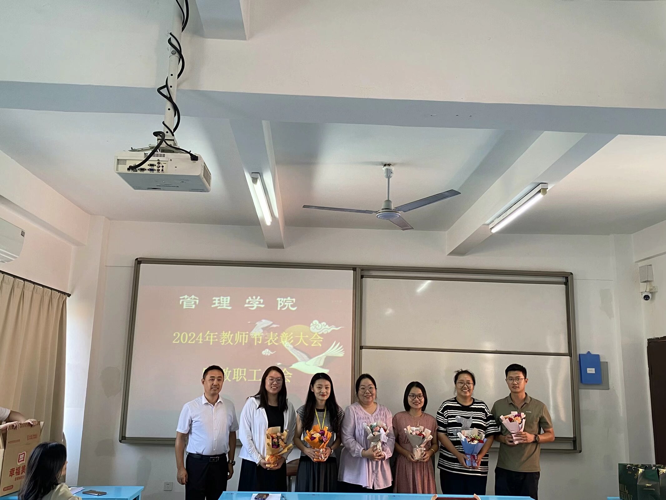 9月10日下午,学院在吉龙楼205举行2024年教师节表彰大会暨教职工大会,深入学习贯彻党的二十届三中全会精神和习近平总书记在全国教育大会上的重要讲话和关于教师队伍建设的重要指示精神,表彰在党建思政、教书育人、科技创新、技能竞赛等领域取得突出成绩的优秀个人。学院党总支书记兼常务副院长许惠铭,副院长庄海刚、副院长程春,党总支副书记陈绍炯出席大会,全体教职员工参加大会。大会由党总支书记兼常务副院长许惠铭主持。