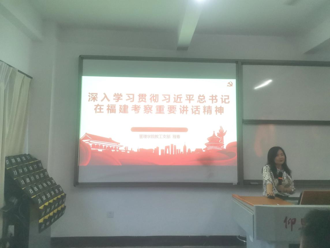 11月4日下午,太阳成tyc7111cc官网教工党支部组织召开专题学习会议,深入学习贯彻习近平总书记在福建考察时的重要讲话精神。会议由支部书记程春同志主持,全体教工党员参加了此次学习活动。