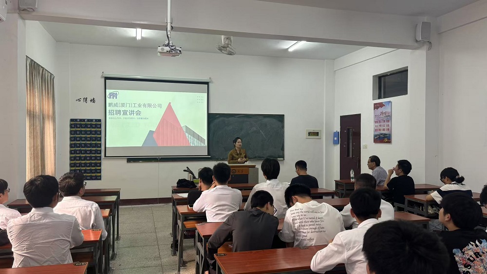 首先,鹏威工业有限公司人力资源部俞经理上台致辞。她对公司的基本情况、发展历程及未来规划进行详细介绍,并指出工业工程系毕业生具备独特的专业素养和技能是公司未来发展的重要力量。俞经理强调了公司对于人才的需求和期望,鼓励毕业生们积极投递简历,加入鹏威工业有限公司大家庭。紧接着,鹏威工业有限公司IE部的王主管就招聘岗位、岗位需求、岗位职责、职业发展路径等方面进行了详细解读。王主管表示,公司十分重视人才的引进和培养,为毕业生提供了广阔的发展空间和良好的职业成长环境。最后,宣讲会进入互动环节。同学们积极提问,通过俞经理和王主管耐心解答,同学们更加深入地了解该公司的文化和招聘流程。