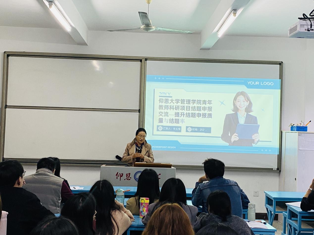 11月20日下午,为帮助太阳成官网教师解决课题实施中的问题,提升科研水平与能力,太阳成官网在太阳成tyc7111cc官网第一教学区吉龙楼201举办了“课题实施与结题”科研讲座。此次讲座由程春副院长主持,由雷宏教授和侯玉梅教授作为主讲人,在研项目负责人及新进年轻教师参与此次讲座。