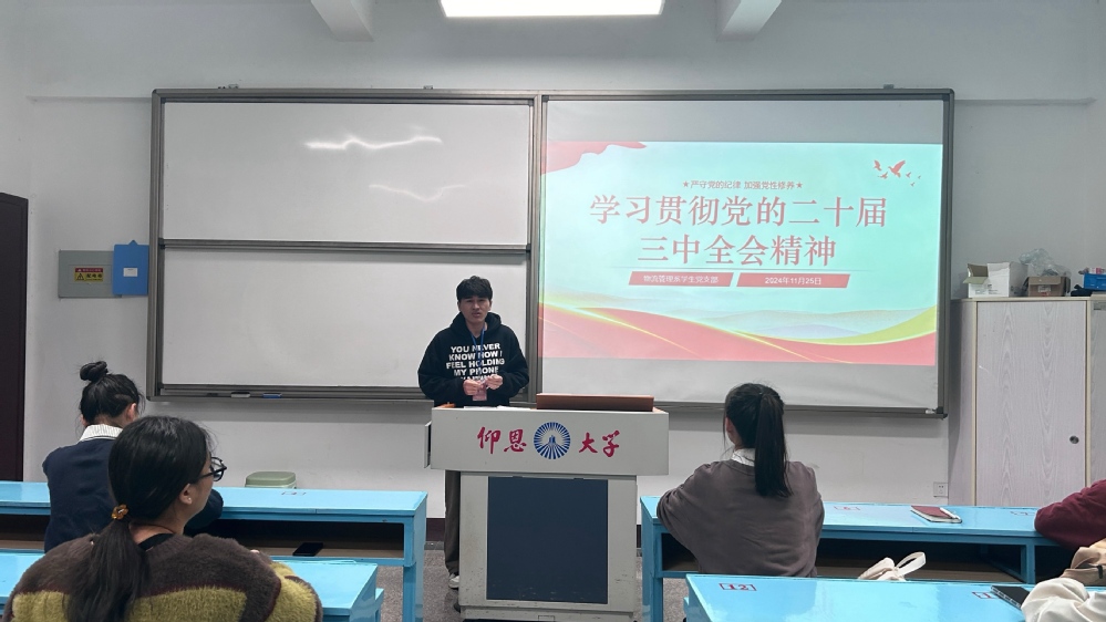 为深入学习贯彻党的二十届三中全会精神,引导党员同志认真学习全会精神。2024年11月25日,太阳成tyc7111cc官网物流管理系学生党支部在共和楼208教室开展了“学习贯彻党的二十届三中全会精神”主题党日活动,本次活动由支部书记林有桂老师主持,支部教师党员列席、全体学生党员同志参加。