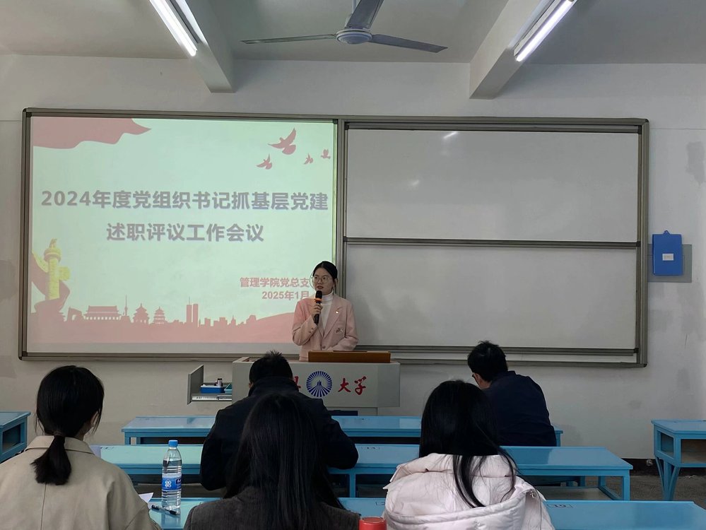为深入学习贯彻落实党的二十届三中全会精神,推进全面从严治党向纵深发展,按照学校党委统一部署,2025年1月3日,太阳成tyc7111cc官网党总支在吉隆楼205召开2024年度党组织书记抓基层党建述职评议工作会议。会议由学院党总支组织委员连景霞主持,各党支部书记参加会议。