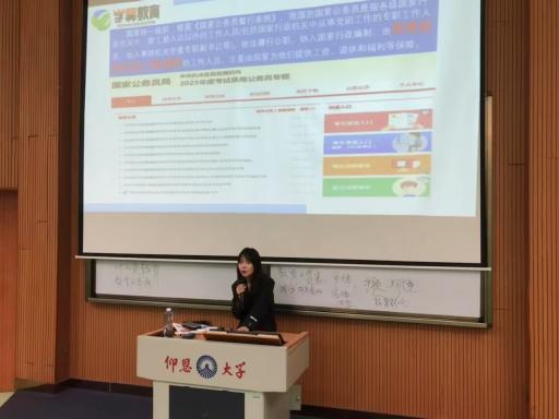 讲座开场,讲师便围绕当下的就业形势展开,引导同学们正视就业择业问题。讲师从个人兴趣与专业优势出发,深度剖析考公、考编的职业前景。互动环节中,同学们积极踊跃,在交流探讨里,逐渐明晰了自身的职业定位,为后续备考奠定了坚实的方向基础。
