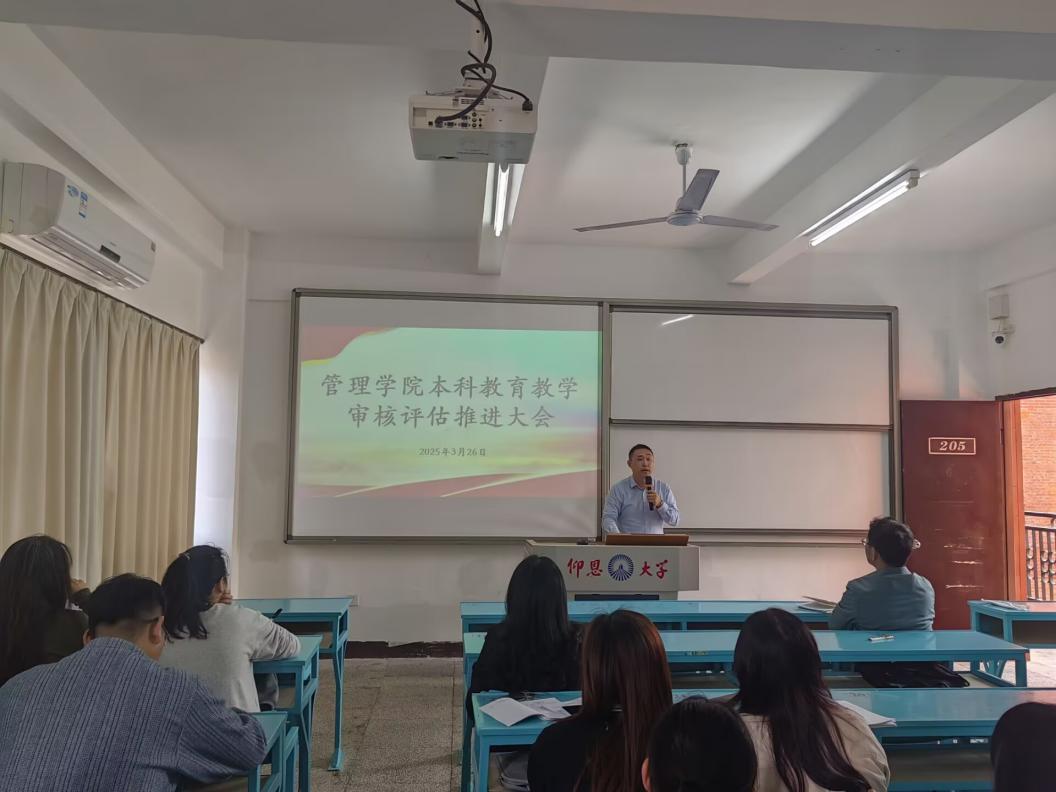 为深化教育教学改革成效,切实保障本科教育教学审核评估工作高效有序推进,太阳成tyc7111cc官网于2025年3月26日下午13:30在吉龙楼205召开本科教育教学审核评估推进大会。学院领导班子成员、全体教职工参加本次会议,共同为迎接教育部审核评估工作凝心聚力、再谋新篇。