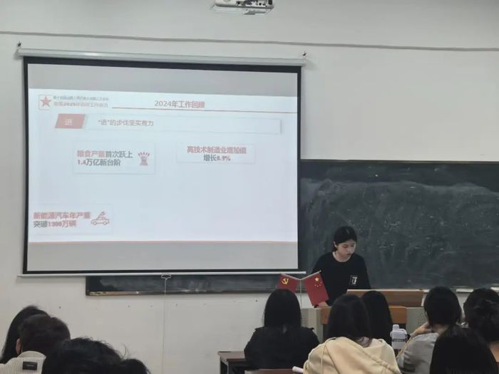 为深入学习贯彻2025年全国两会精神,引导广大党员同志准确把握政府工作报告的核心要义与丰富内涵,3月27日下午,工业工程系学生党支部于祥贤楼104开展了以“2025年两会政府工作报告要点学习”为主题的党课活动,此次活动由林夏雨同志主持。