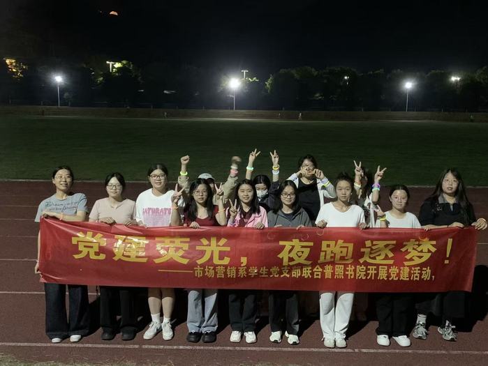 5月14日晚上,市场营销系学生党支部联合普照书院在校园内开展“党建荧光,夜跑逐梦”活动,部分党员及群众积极参与。