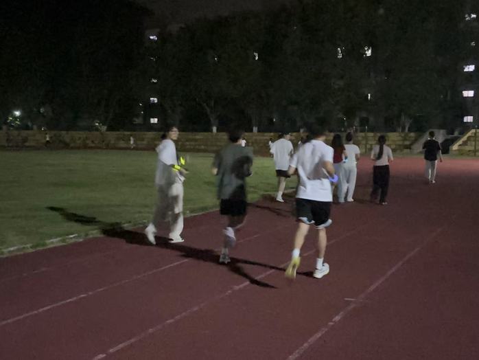 傍晚时分,参与者们陆续抵达集合点。大家脸上洋溢着期待与兴奋,在签到处领取荧光手环。在活动负责人的带领下,全体人员进行了热身运动,为即将开始的夜跑做好准备。夜跑正式开始后参与者们手持荧光棒,如点点繁星般在夜色中穿梭。大家沿着既定路线奔跑,一路上欢声笑语不断,相互鼓励、相互支持。荧光的光芒与操场的夜景交相辉映,形成了一道独特而亮丽的风景线。